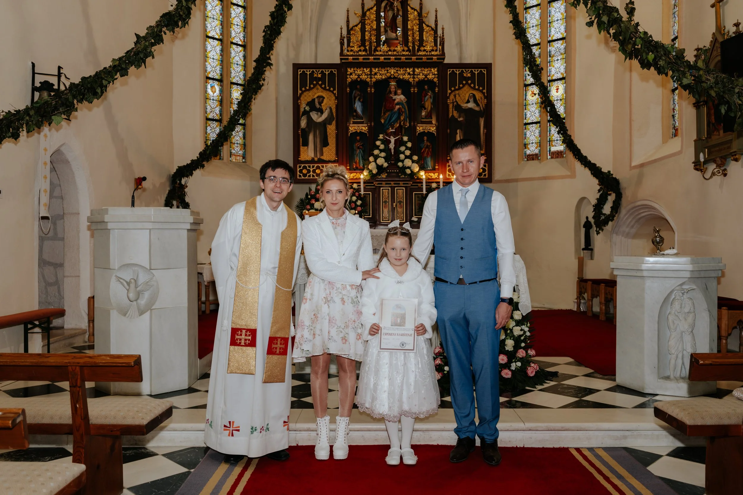 Tijekom fotografiranja radim nenametljivo, s poštovanjem prema obredu i prostoru, hvatajući prirodne emocije, poglede, osmijehe i sitne geste koje ovaj dan čine jedinstvenim. Posebnu pažnju posvećujem djetetu, roditeljima, kumovima i detaljima koji će s vremenom postati dragocjena uspomena.